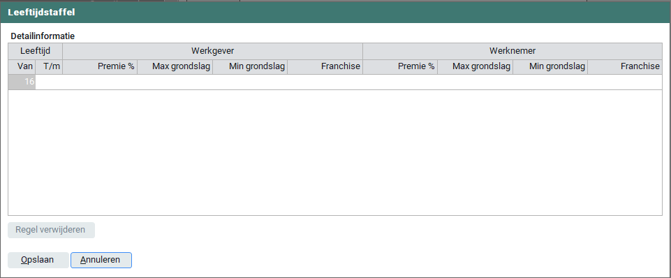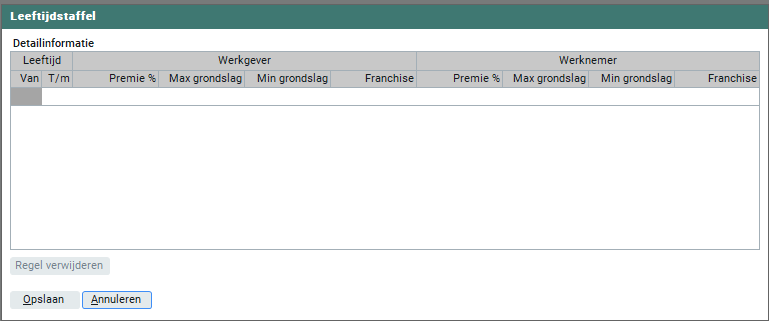 Als de WIA-hiaat premie wordt vastgesteld op basis van vaste gegevens per leeftijdscategorie dien je dit middels de 'Leeftijdstaffel' in te richten.