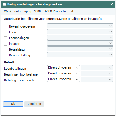 Autorisatie-instellingen voor gereedstaande betalingen en incasso's