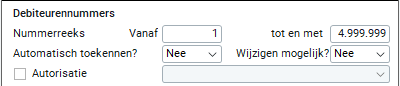 In dit veld bepaal je de nummering van de debiteurennummers en hoe deze worden toegekend.