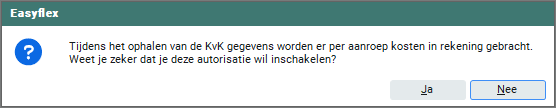 Wanneer je op 'Ja' klikt kun je de desgewenste autorisatie selecteren. Enkel personen met deze autorisatie kunnen vervolgens deze functionaliteit gebruiken bij jet ingeven van het KvK nummer.