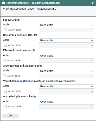 Fasewijziging: Wanneer je deze signalering aanzet wordt bij het openen van een urendeclaratie een melding getoond omtrent het toepassen van een volgende fase.
