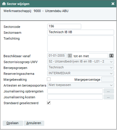 Als deze optie is aangevinkt, is deze sector standaard geselecteerd bij de relatie op het tabblad 'Overige gegevens' als beschikbare sector voor plaatsingen.