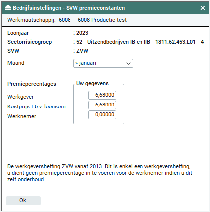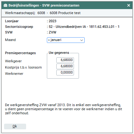 Let op: Als je premiepercentages gaat wijzigen en er zijn al declaraties heeft verloond in de huidige maand, dan dien je te allen tijden de eerst volgende maand te selecteren.