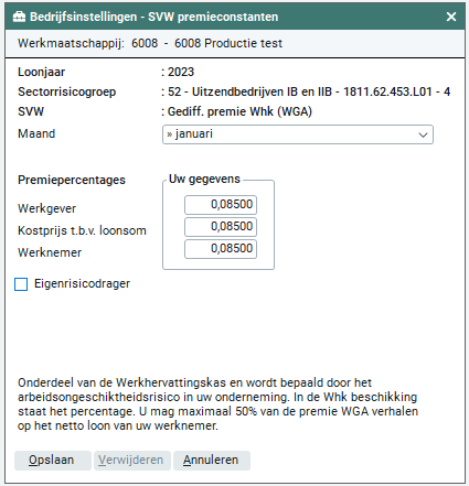 Deze optie is alleen beschikbaar bij de SVW premies Gediff. premie Whk (WGA-vast) en Gediff. premie Whk (ZW-flex). Als je eigenrisicodrager bent, vink je deze optie aan.