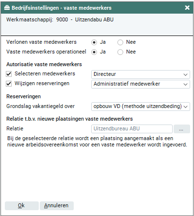 Standaard staat de instelling op 'Nee'. Als je vaste medewerkers wilt gaan verlonen wijzig je deze naar 'Ja'.