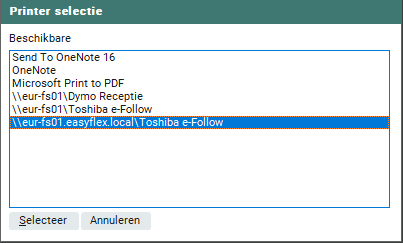 Wanneer de loonspecificatie niet juist wordt geprint, kun je de printerselectie binnen Easyflex wijzigen. Je activeert de knop 'Printer'.