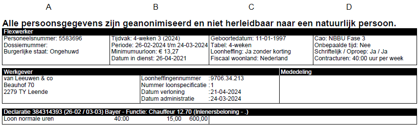 Alle loonspecificaties worden zodanig verwerkt dat deze digitaal via de website kunnen worden geraadpleegd of afgedrukt kunnen worden wanneer de flexwerker deze aan de balie komt ophalen.