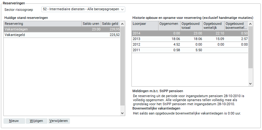 4. 'Opnemen alles' bij 'Vakantiedagen' op het tabblad 'Reserveringen' in de urendeclaratie, het maakt niet uit of het direct uitbetalen bovenwettelijke vakantiedagen aan of uit staat = bovenwettelijke vakantiedagen tellen niet mee voor de NEWML berekening, de wettelijke vakantiedagen tellen wel mee voor de NEWML berekening.