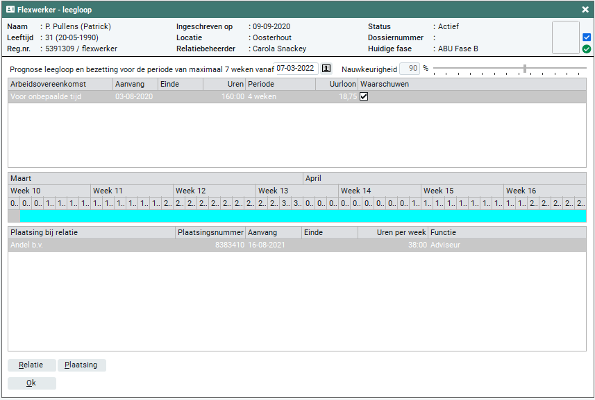Wanneer de flexwerker geplaatst is in de periode van prognose leegloop, worden de betreffende plaatsingen getoond.
