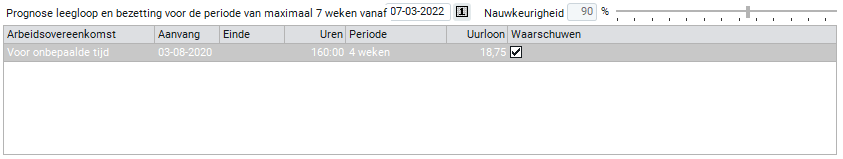 Wanneer er sprake is van leegloop, wordt een overzicht getoond van de betreffende arbeidsovereenkomst(en).