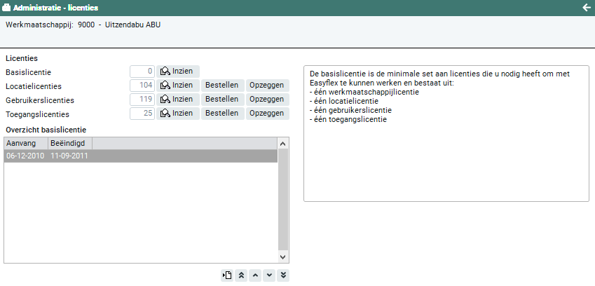 De basislicentie is de minimale set aan licenties die je nodig hebt om met Easyflex te kunnen werken en bestaat uit: