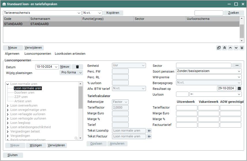 Binnen het tarievenschema kun je looncomponenten met tarieven vastleggen.