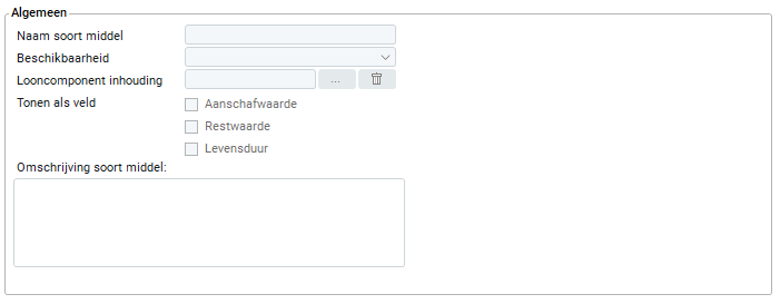 Op het tabblad 'Algemeen' vermeld je de basisinformatie van het soort middel dat je aanmaakt.