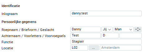 Je voert een inlognaam in. Met deze inlognaam kan de medewerker inloggen in Easyflex. Vervolgens leg je de persoonlijke gegevens van de medewerker vast. Deze persoonlijke gegevens bestaan uit de volgende onderwerpen: