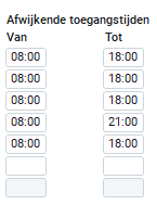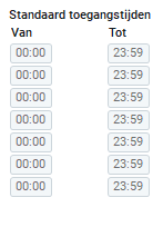 Standaard toegangstijden