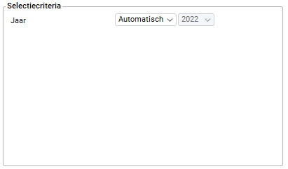In dit veld dien je de selectiecriteria te bepalen voor het overzicht. Als je het overzicht automatisch periodiek aan wilt maken adviseren wij je om hier de optie 'automatisch' te selecteren. Met deze instelling wordt bij de jaarovergang automatisch het jaar opgehoogd en wordt altijd de juiste lijst gegenereerd. Door het selecteren van de optie 'handmatig' kun je het overzicht voor afgesloten loonjaren en loonjaren in afsluitfase aanmaken.