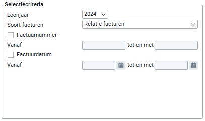 Wanneer je een reeks facturen op factuurdatum wilt opvragen selecteer je deze optie. Je dient altijd een waarde (factuurdatum) op te geven in de velden 'Vanaf' en 'Tot en met'.
