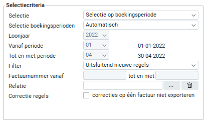 Als je een selectie op boekingsperiode hebt dan dien je een filter in te stellen voor de factuurregels. Je hebt de keuze uit: