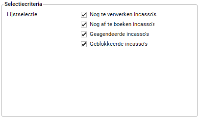 alle incasso's welke nog verwerkt dienen te worden, worden op het overzicht getoondNog af te boeken incasso's