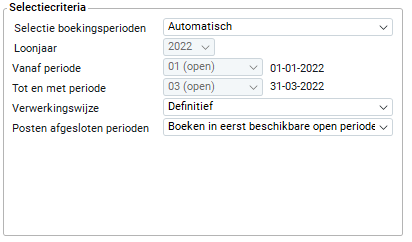 wanneer je kiest voor automatisch, wordt het loonjaar en de periode automatisch gevuldHandmatig