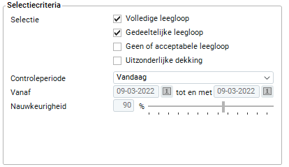 Je kunt de nauwkeurigheid voor het berekenen van de leegloop ingeven. Dit percentage staat standaard op 90%. Leegloop binnen een marge van 10% wordt nu niet getoond. Je kunt de nauwkeurigheid instellen door het verschuiven van de 'slider' (schuifbalk). De marge voor het bereken van leegloop is minimaal 75% en maximaal 100%.