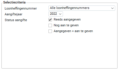 Je kunt een keuze maken uit 'Alle loonheffingennummers' of je kunt per loonheffingennummer een overzicht aanmaken.