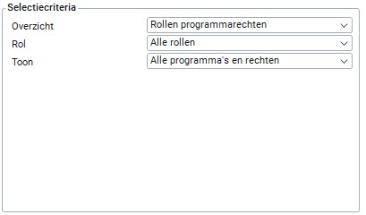 Via dit overzicht kun je een lijst maken waarop één of alle rollen met de daarbij behorende rechten worden getoond.