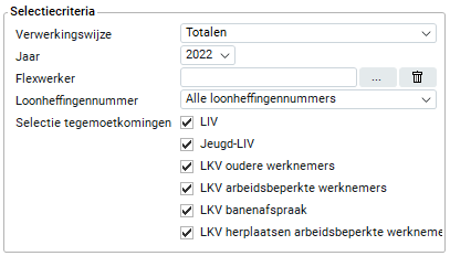 De LIV is vanaf het loonjaar 2017 te selecteren. De overige opties zijn beschikbaar vanaf het loonjaar 2018.