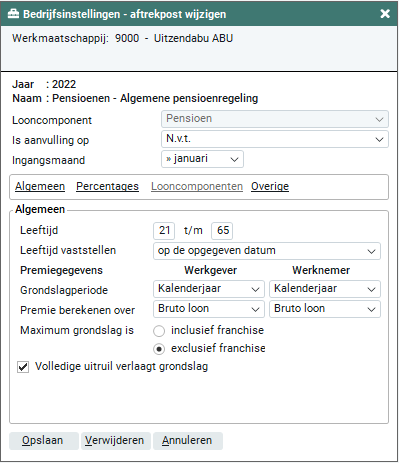 De pensioenregeling geldt voor flexwerkers of medewerkers binnen een bepaalde leeftijdsgroep. Deze leeftijden dien je in dit veld in te geven.