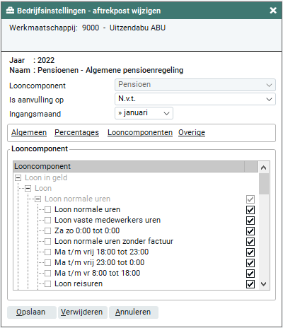 Je kunt handmatig in het tabblad 'Looncomponenten' de looncomponenten te selecteren waarover de pensioenpremie dient te worden berekend.