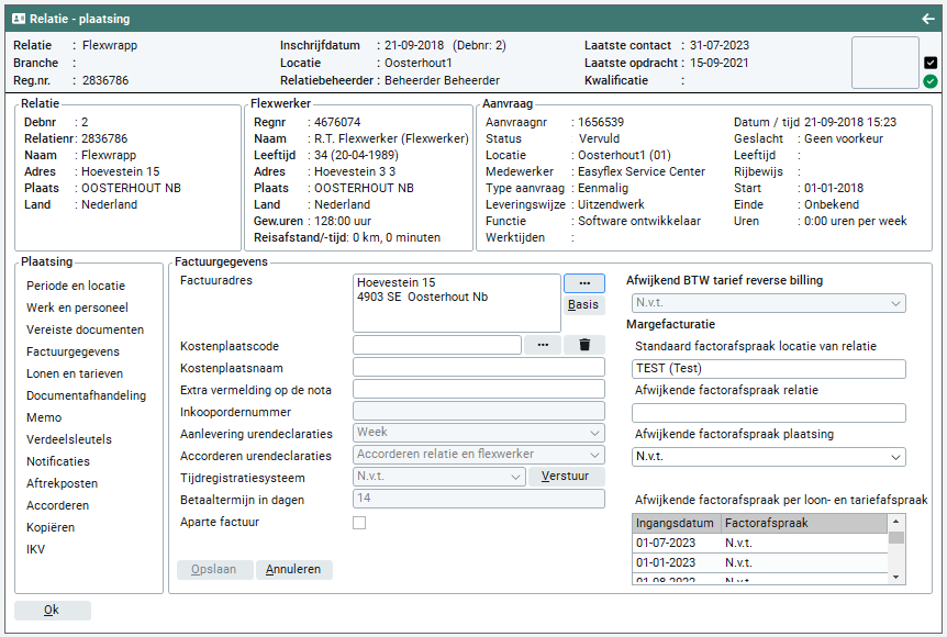 Relatie > Plaatsing > Factuurgegevens