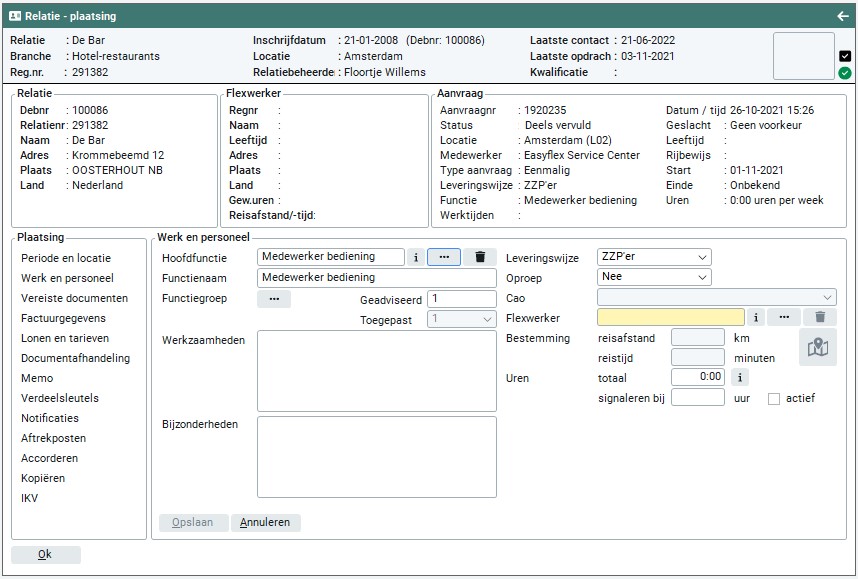 Relatie > Plaatsing > Werk en personeel