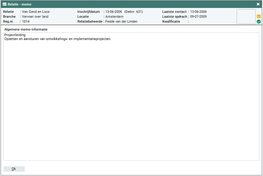 Relaties > Memo