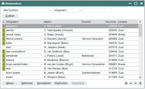 In 'Beheer > Medewerkers' selecteer je de medewerker met de licentie van de werkmaatschappij waarmee je oorspronkelijk inlogt (deze wordt in het rood getoond).
