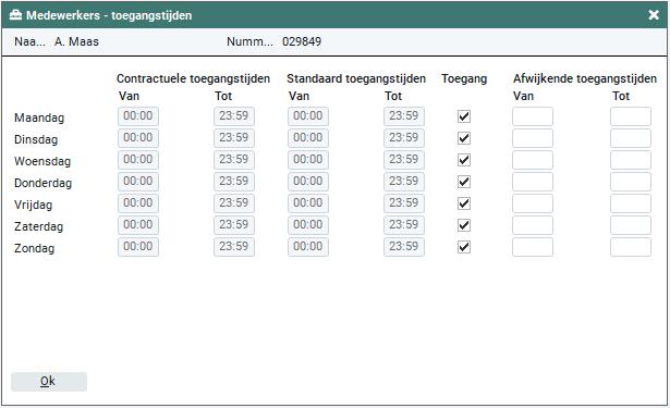 Bij 'Medewerkers - toegangstijden' leg je de toegangstijden vast voor de werkmaatschappij: