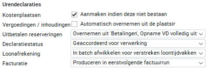 Indien je deze optie aanvinkt worden automatisch kostenplaatsen aangemaakt als deze in een urenbestand staan en niet bekend zijn in Easyflex. In 'Frontoffice > Relaties > Kostenplaatsen' worden deze vastgelegd. Je dient wel op het tabblad 'Bestandsformaat' aan te geven dat er kostenplaatsen in het urenbestand staan. De kostenplaatsen worden dan in de urendeclaraties opgenomen.Vergoedingen/inhoudingen automatisch overnemen uit de plaatsing